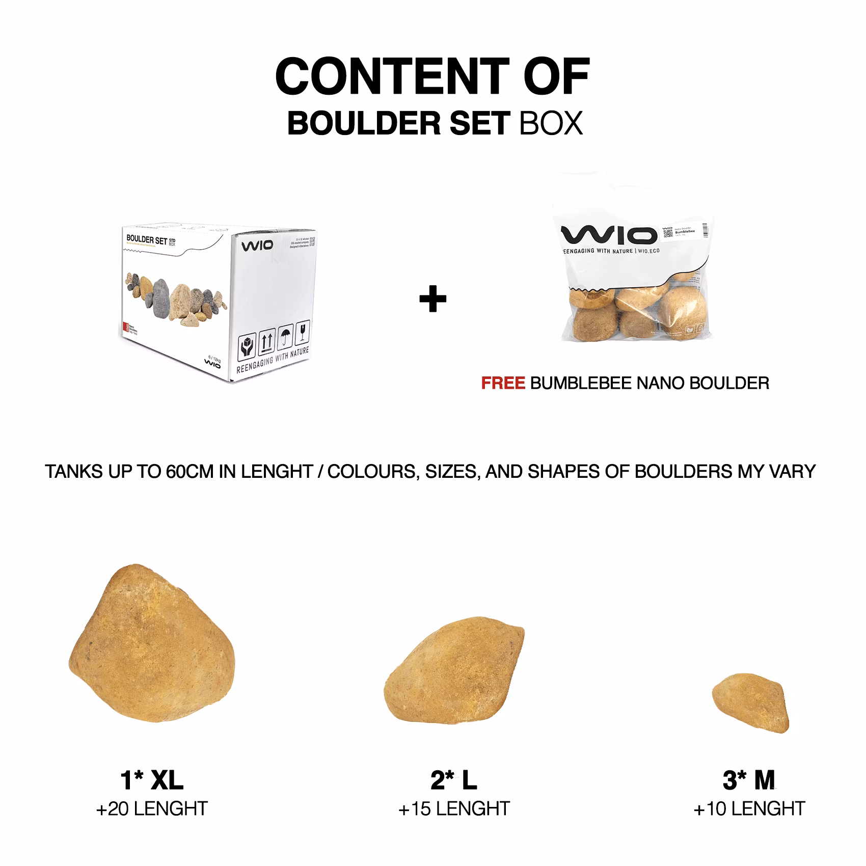Komplett kit med stenar - BumblebeeInnehåller:1 st XL (20+ cm)2 st L (15+ cm) 3 st M (10+ cm)1 st påse med nano stenar... Läs mer