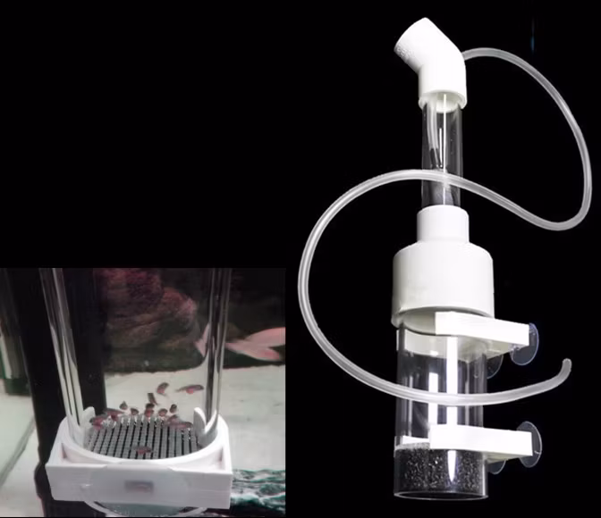 Med sitt biologiska filter och luftsystem säkerställer äggkläckaren att det finns syrerikt och rent vatten hela tiden. Detta förhindrar effektivt svampangrepp på rommen. Äggkläckaren fästs enkelt på insidan av akvariet med sugkoppar.